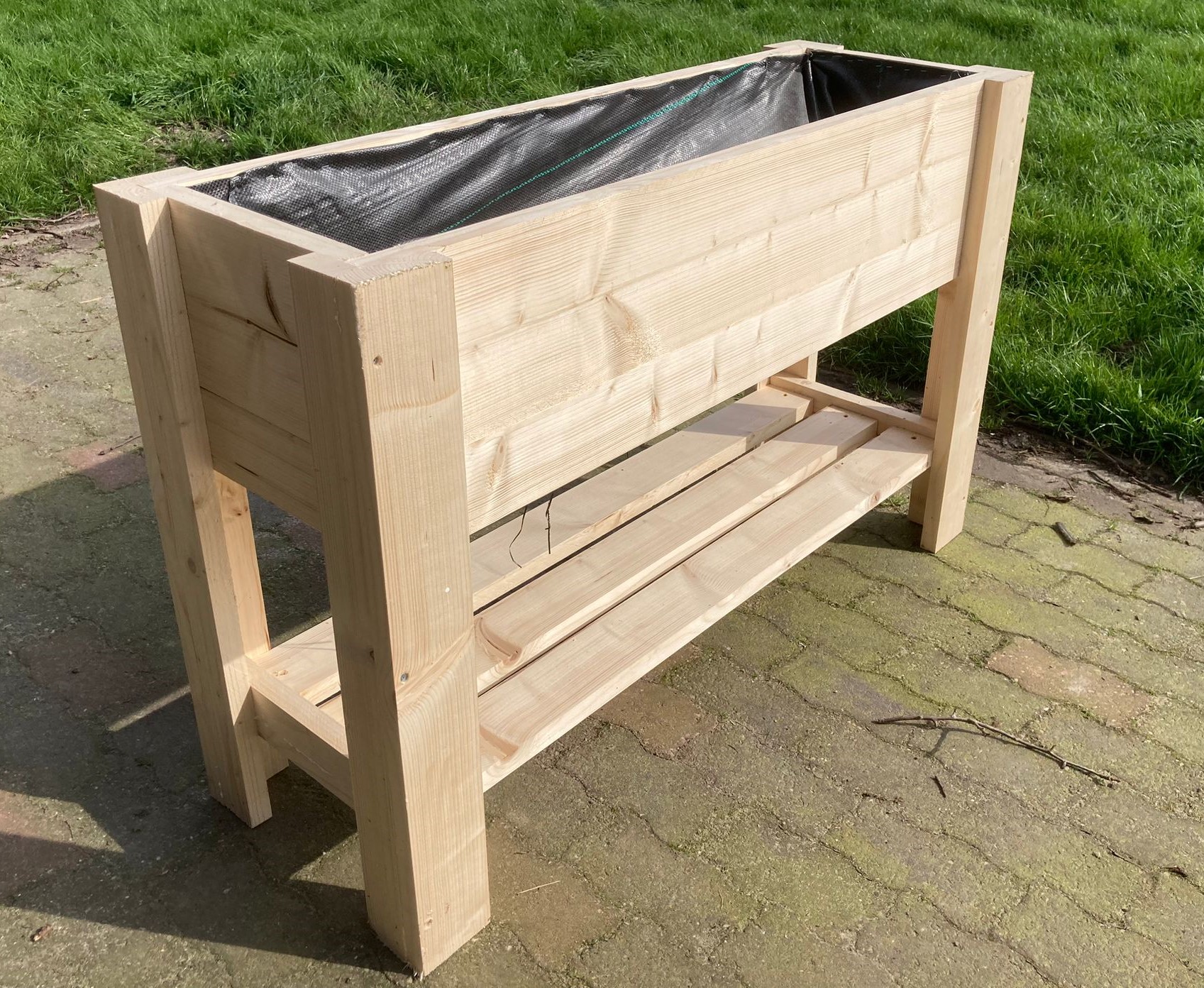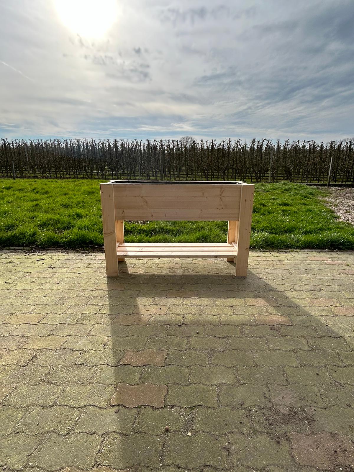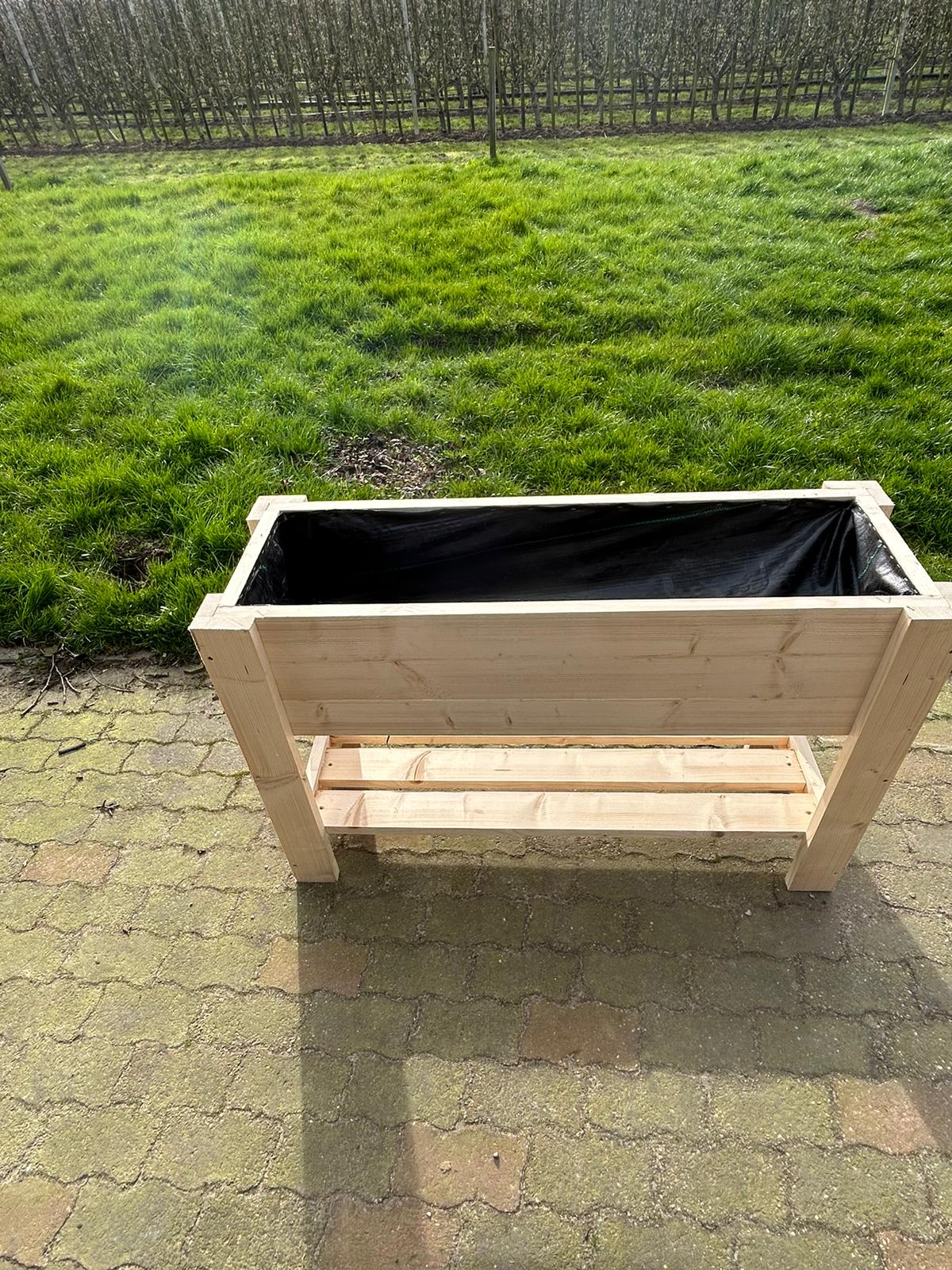 Kweektafel steigerhout. Voorzien van worteldoek aan de binnenzijde.