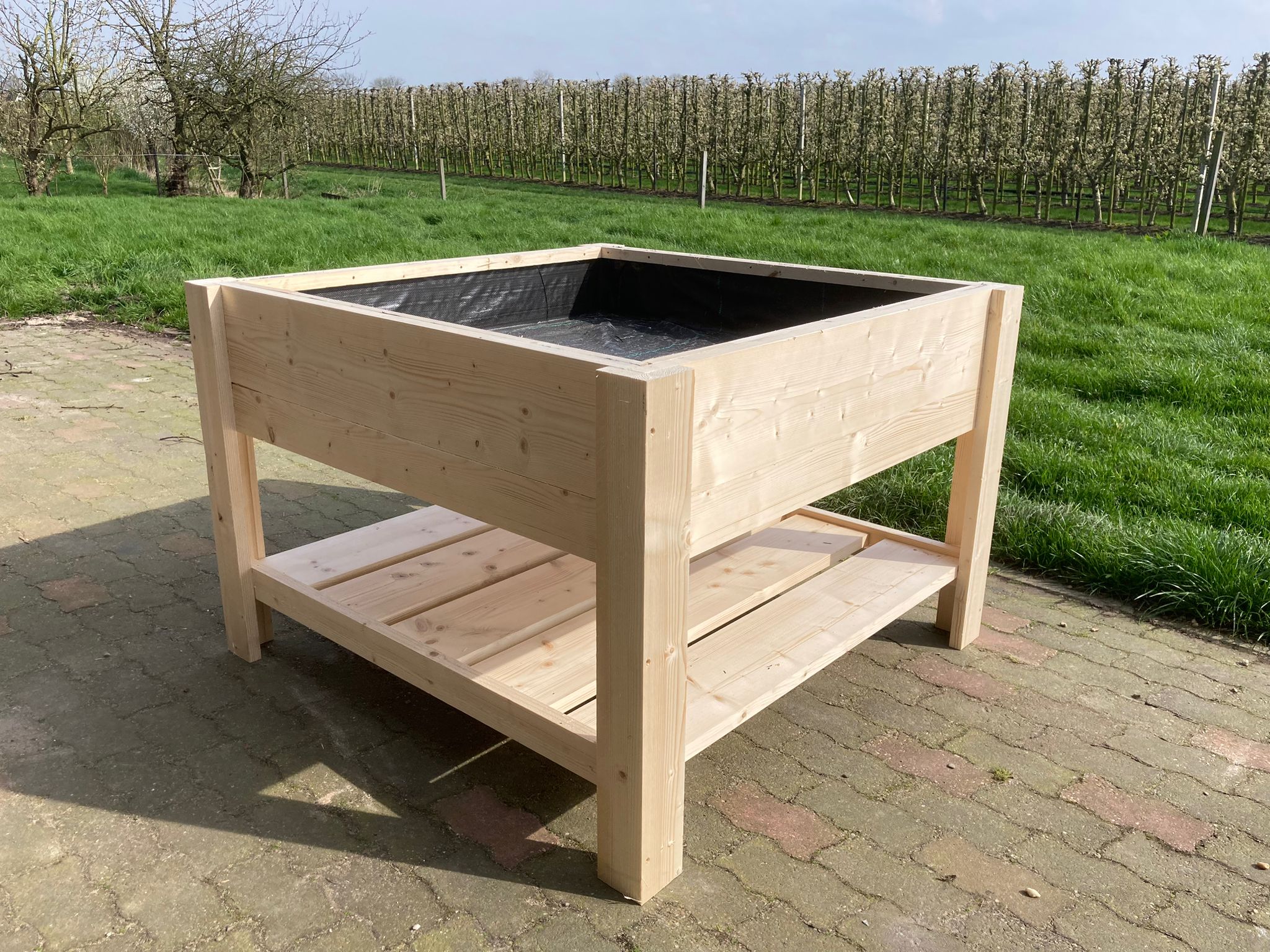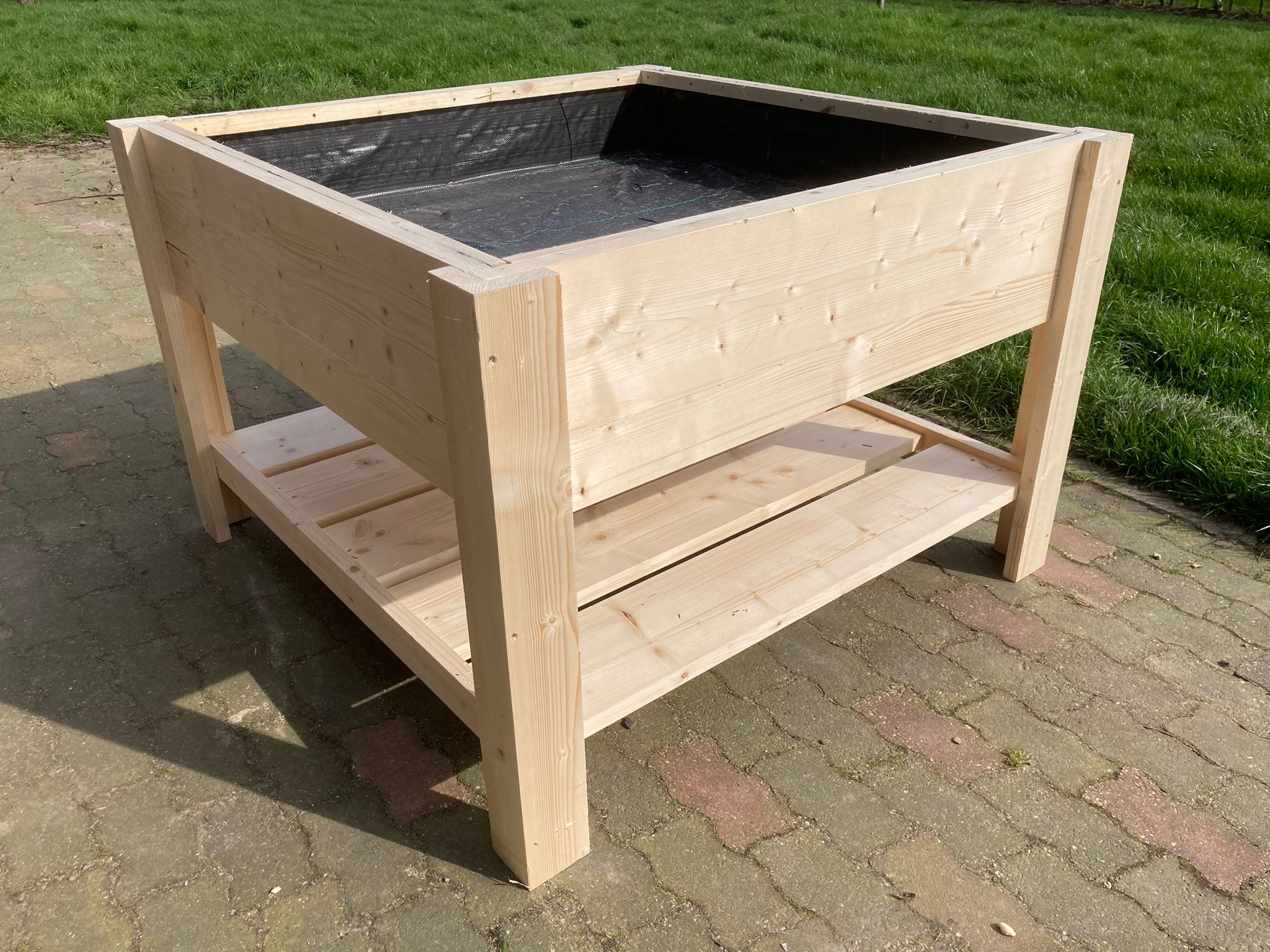 Kweektafel / moestuinbak steigerhout. Voorzien van worteldoek aan de binnenzijde.